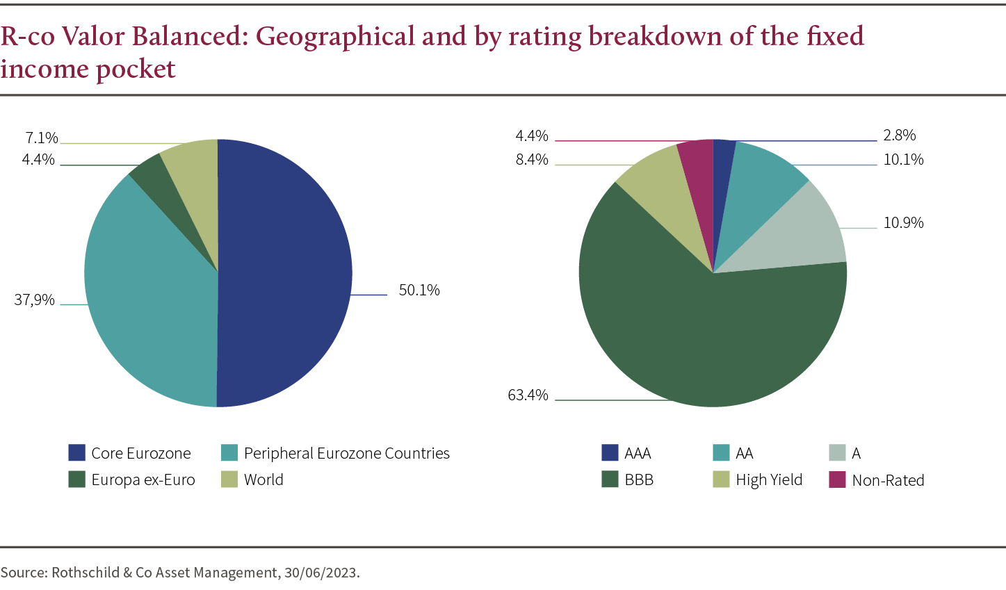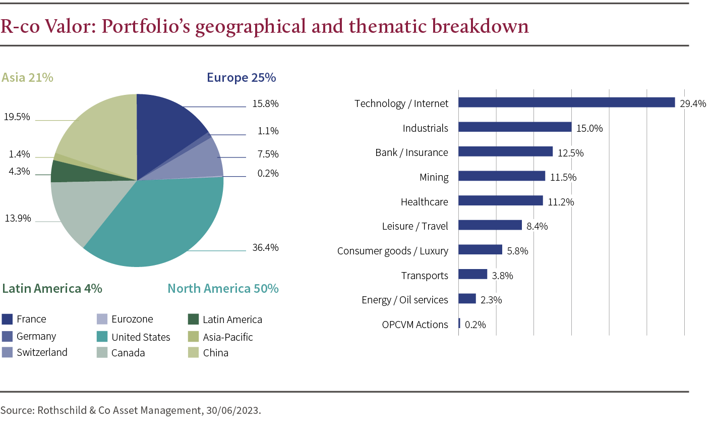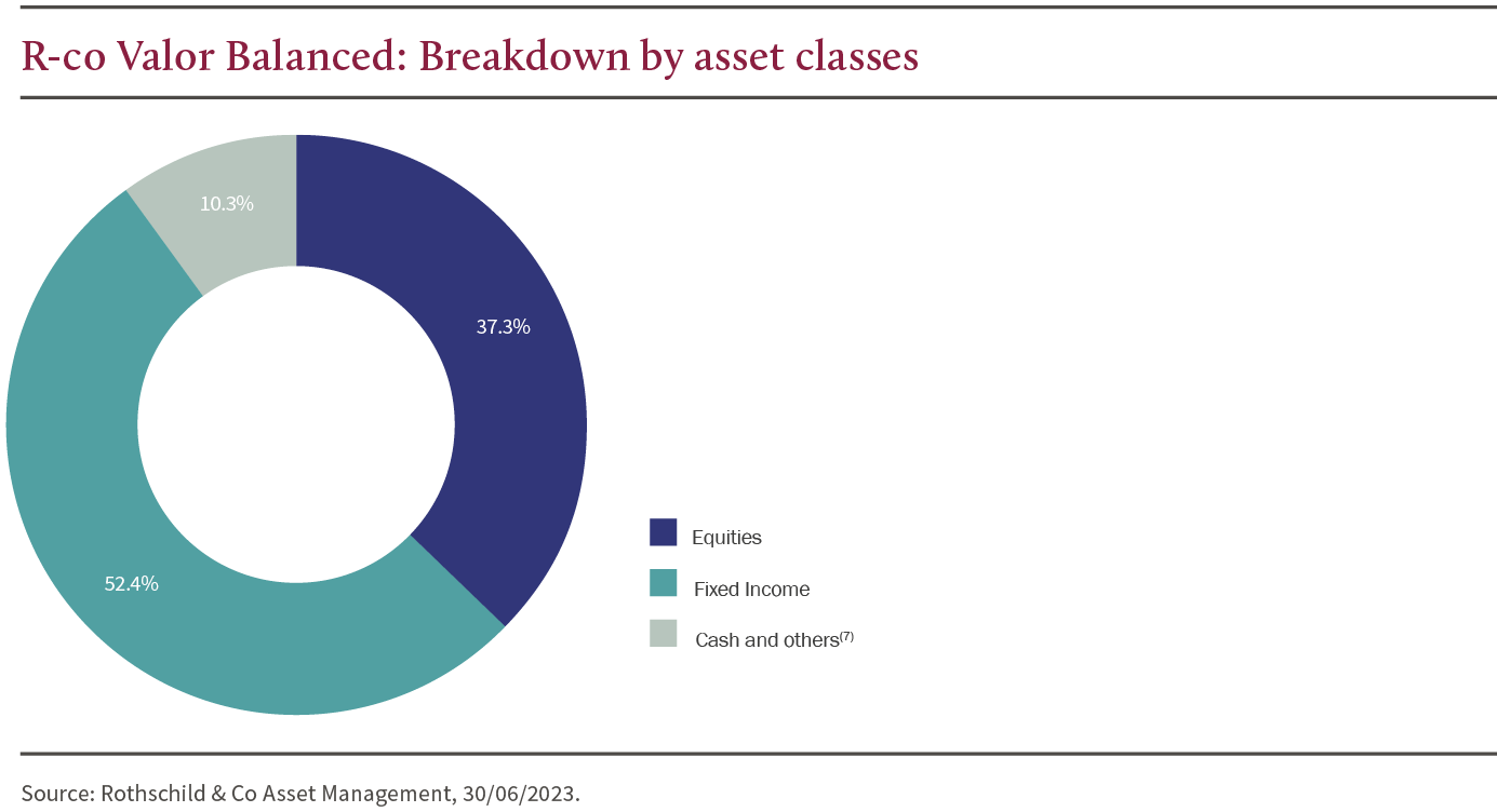 Within R-co Valor, we lowered our equity exposure to 73% in late June, along the lines of what we had been doing since late 2022. The rest of the allocation, 27%, is invested in money-market funds, French government paper maturing in less than one year, and, marginally, in cash(8).