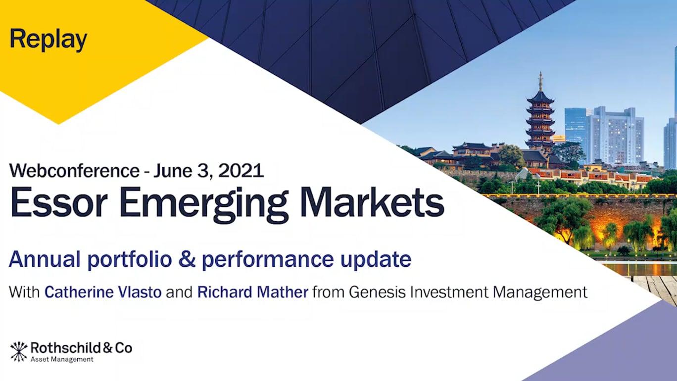 Watch the replay of the annual portfolio & performance update of Essor Emerging Markets on 3 June 2021 with Catherine Vlasto and Richard Mather from Genesis Investment Management.