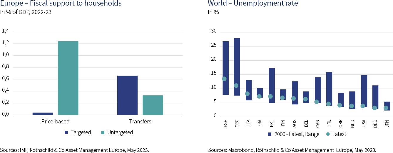 Indeed, although the transmission of monetary policy is generally thought to have long and variable lags, there are several factors that have contributed to more persistent underlying price pressures. The boosting impact of the Chinese reopening, combined with a warmer winter that supported the construction sector and prevented an energy crisis in Europe, have frustrated central banks’ efforts to slow down the economy. What’s more, several governments – especially in Europe – acted swiftly to extend support to households and firms, which helped cushion the effects on growth. However, this fiscal support was largely untargeted and such broad-based measures have undermined the impacts of monetary policy tightening.