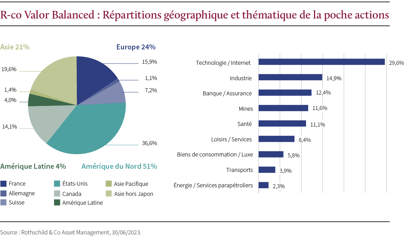 À fin juin, R-co Valor Balanced affiche une exposition actions à 37 %, la poche obligataire représente 52 %, le reste étant en monétaire et assimilé(9).
